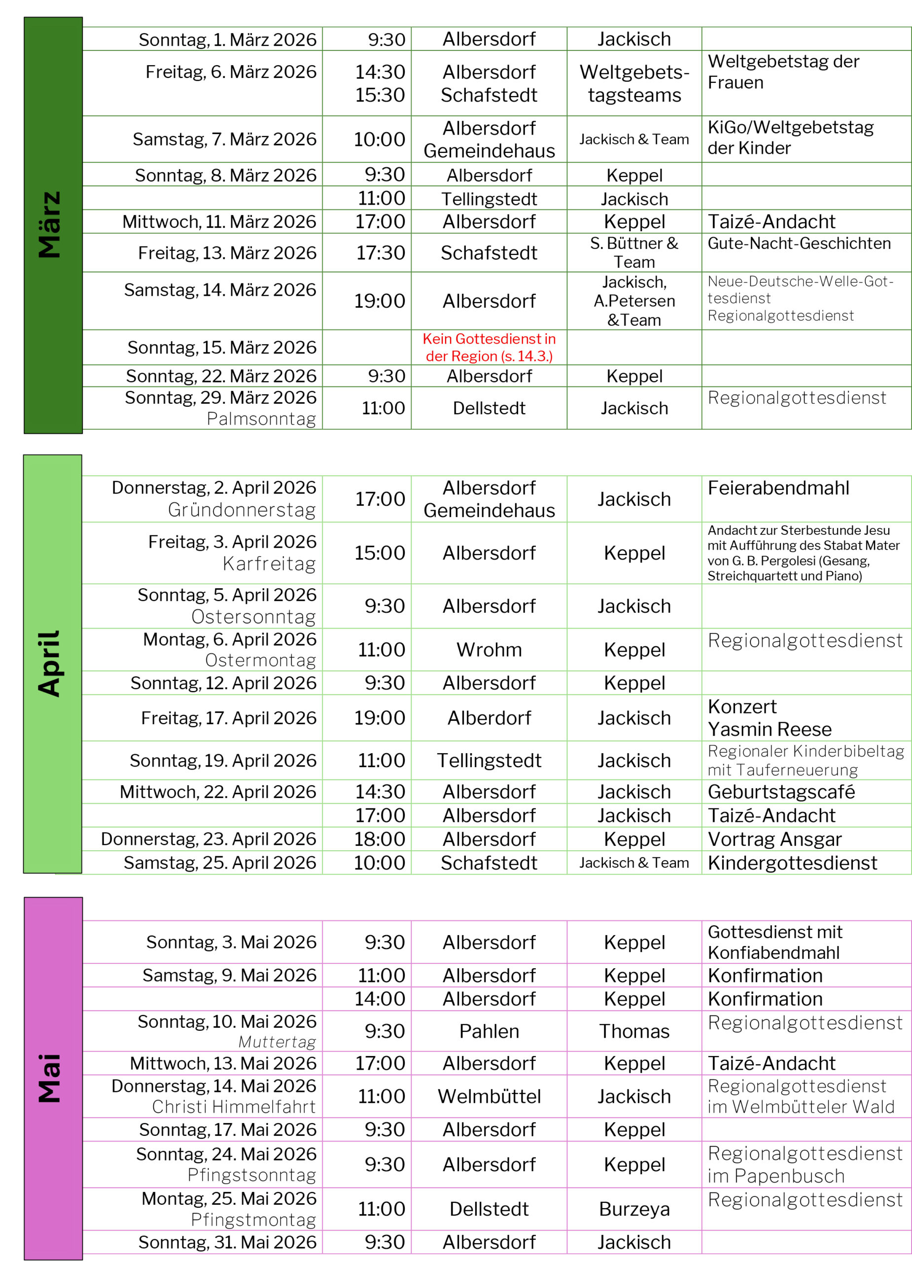 Vun Harten willkommen bi de Kark in Albersdörp!